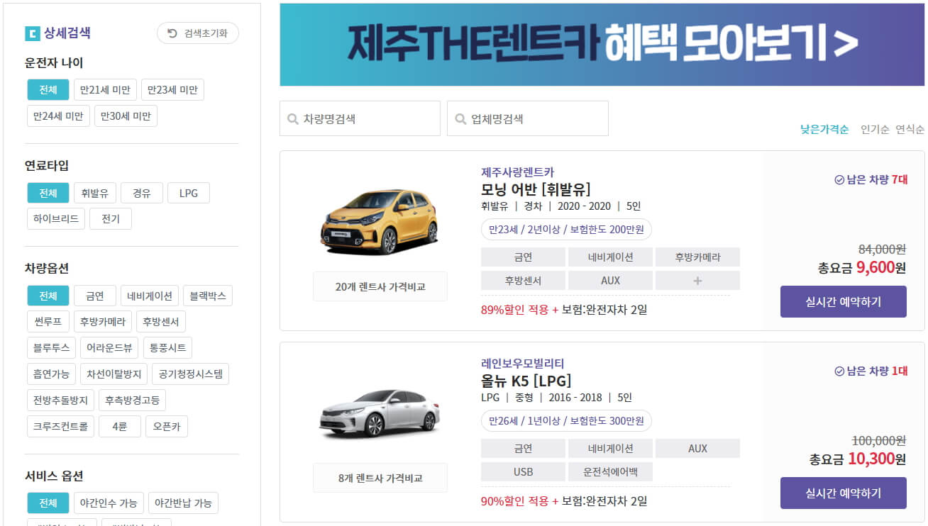 제주도 여행에서 필수인 렌트카를 원하는 차량을 실시간으로 비교하고 최저가로 예약할 수 있는 곳을 알려드릴테니 지금 바로 진행해보세요.
